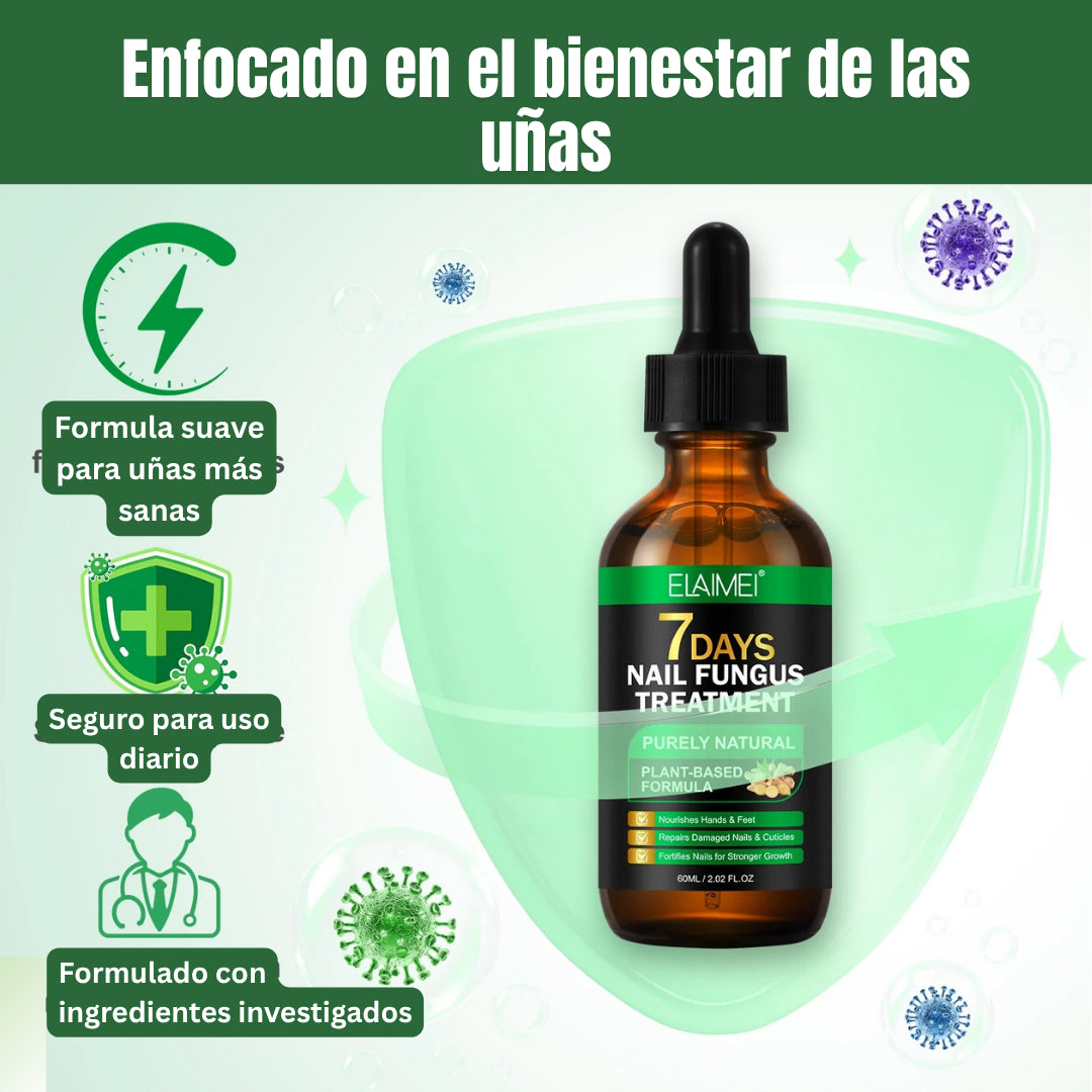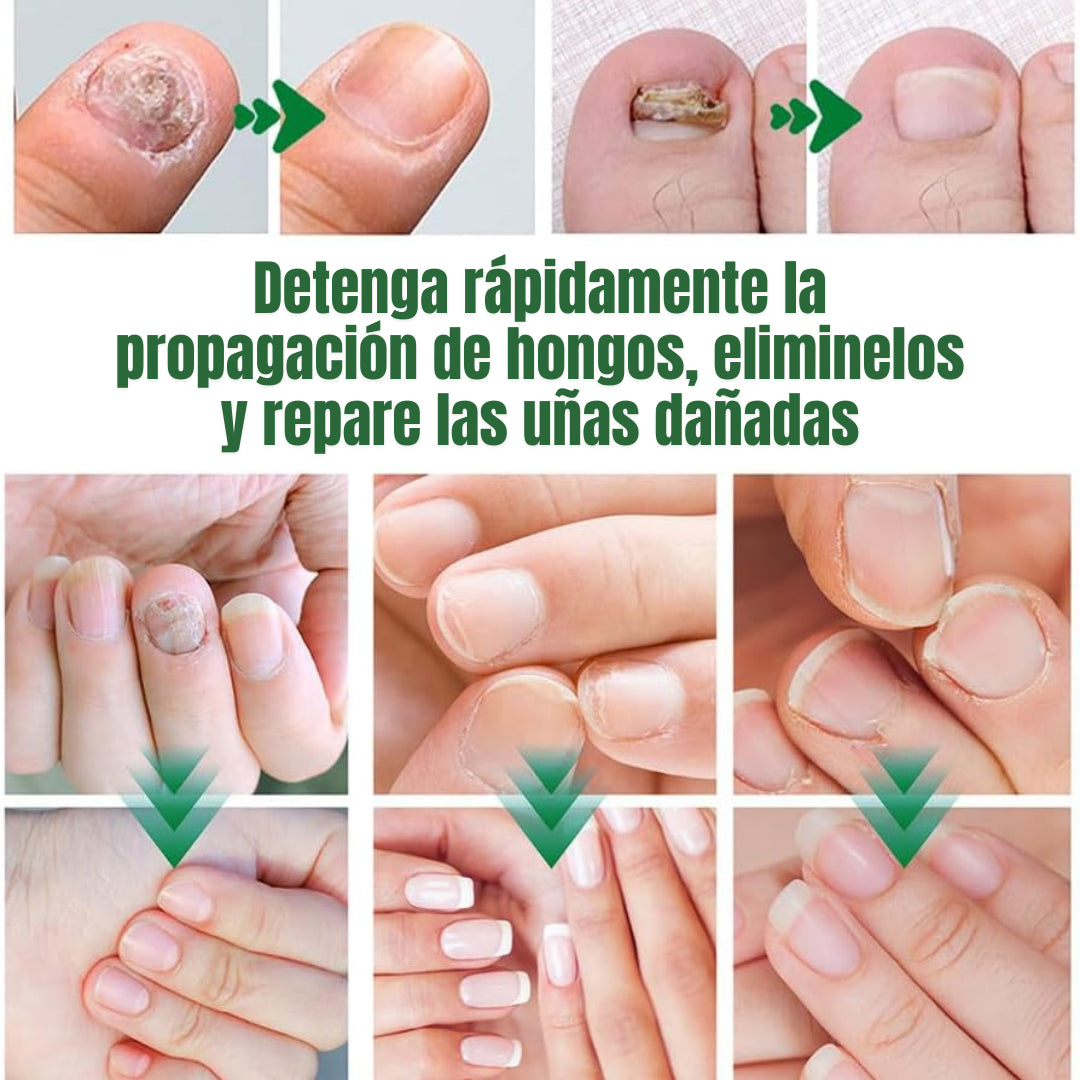 Con su fórmula natural de jengibre y cúrcuma, elimina los hongos desde la raíz, restaura el color natural y fortalece tus uñas para que vuelvan a crecer sanas y brillantes.