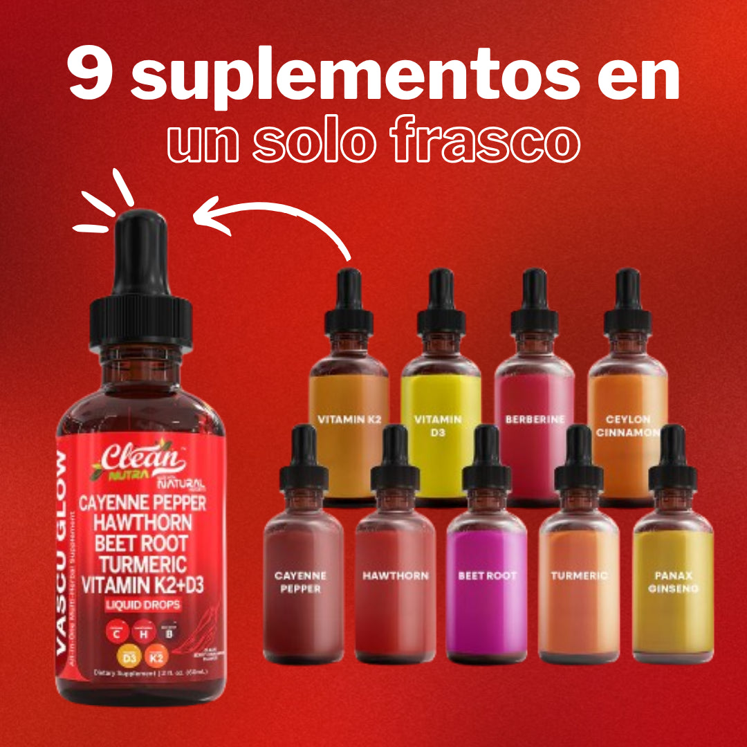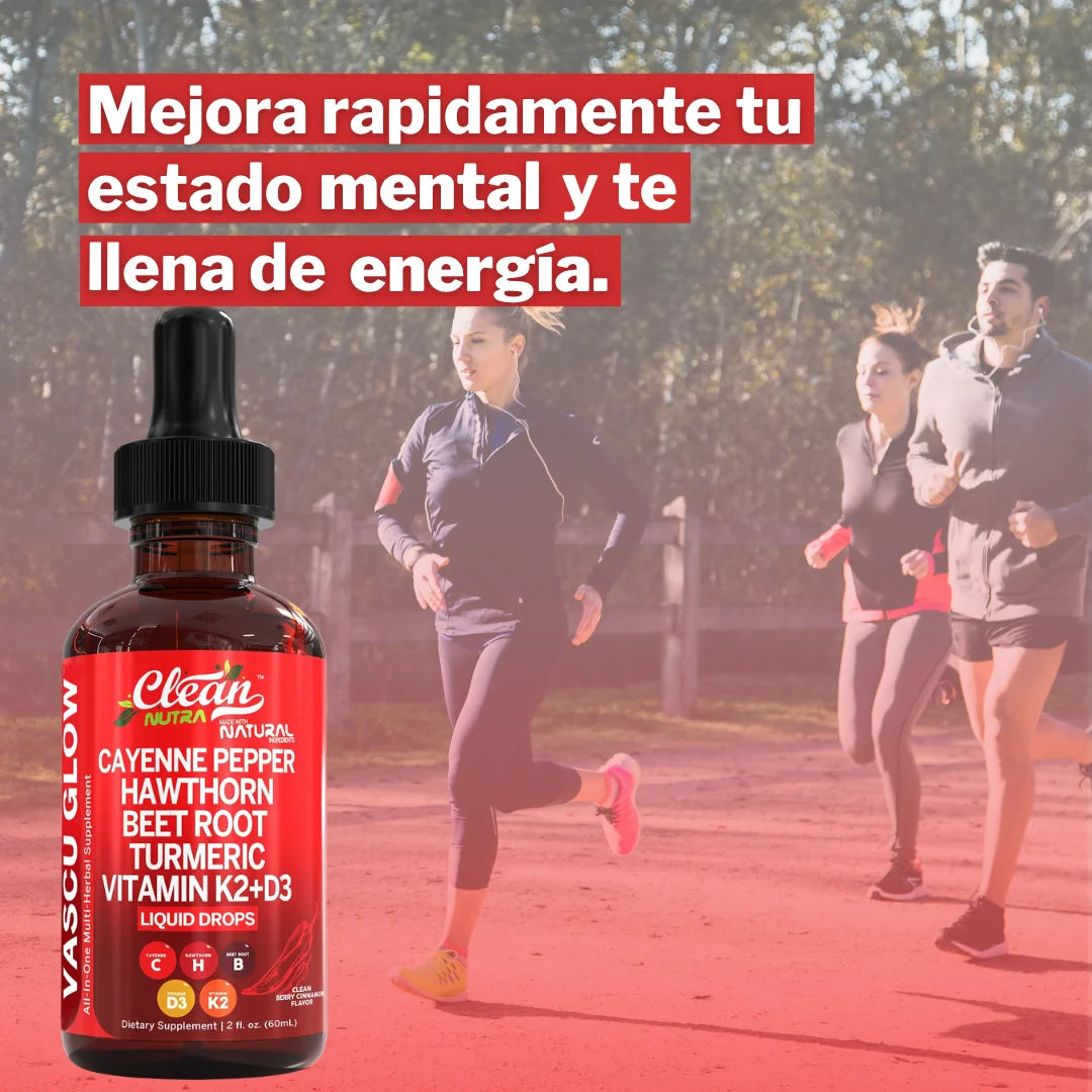 Es un suplemento líquido natural formulado con extractos de cayena, remolacha, cúrcuma, berberina, ginseng, canela de Ceilán y vitaminas K2 + D3, diseñado para cuidar tu corazón, mejorar la circulación y aumentar tu energía diaria.
